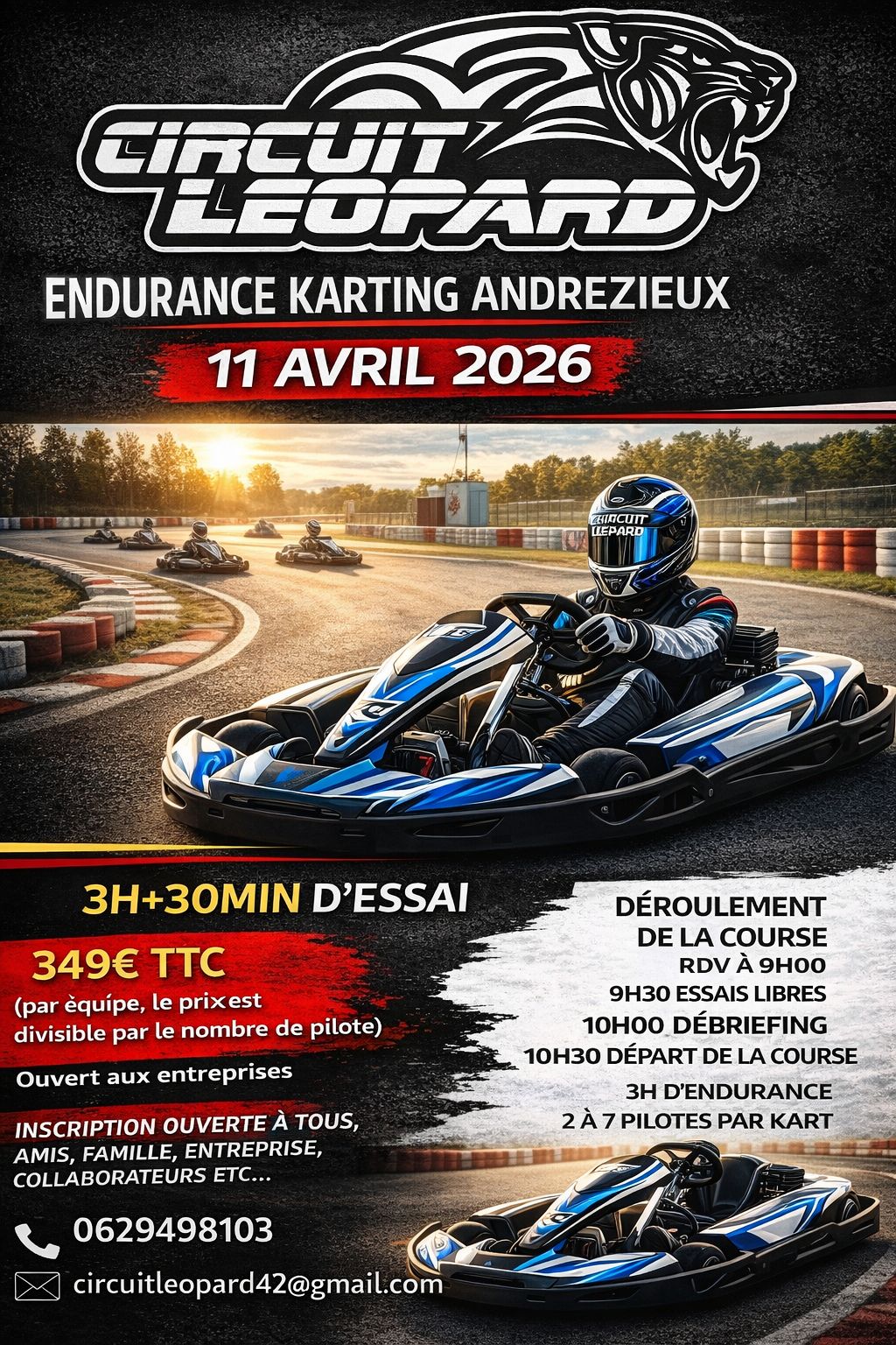 Forfait à partir de 49 € par personne (30 minutes de roulage) comprenant 10 minutes d'essai, 10 minutes de course et 10 minutes de Manche Finale. Le tout avec classement et chrono. Uniquement sur réservation.